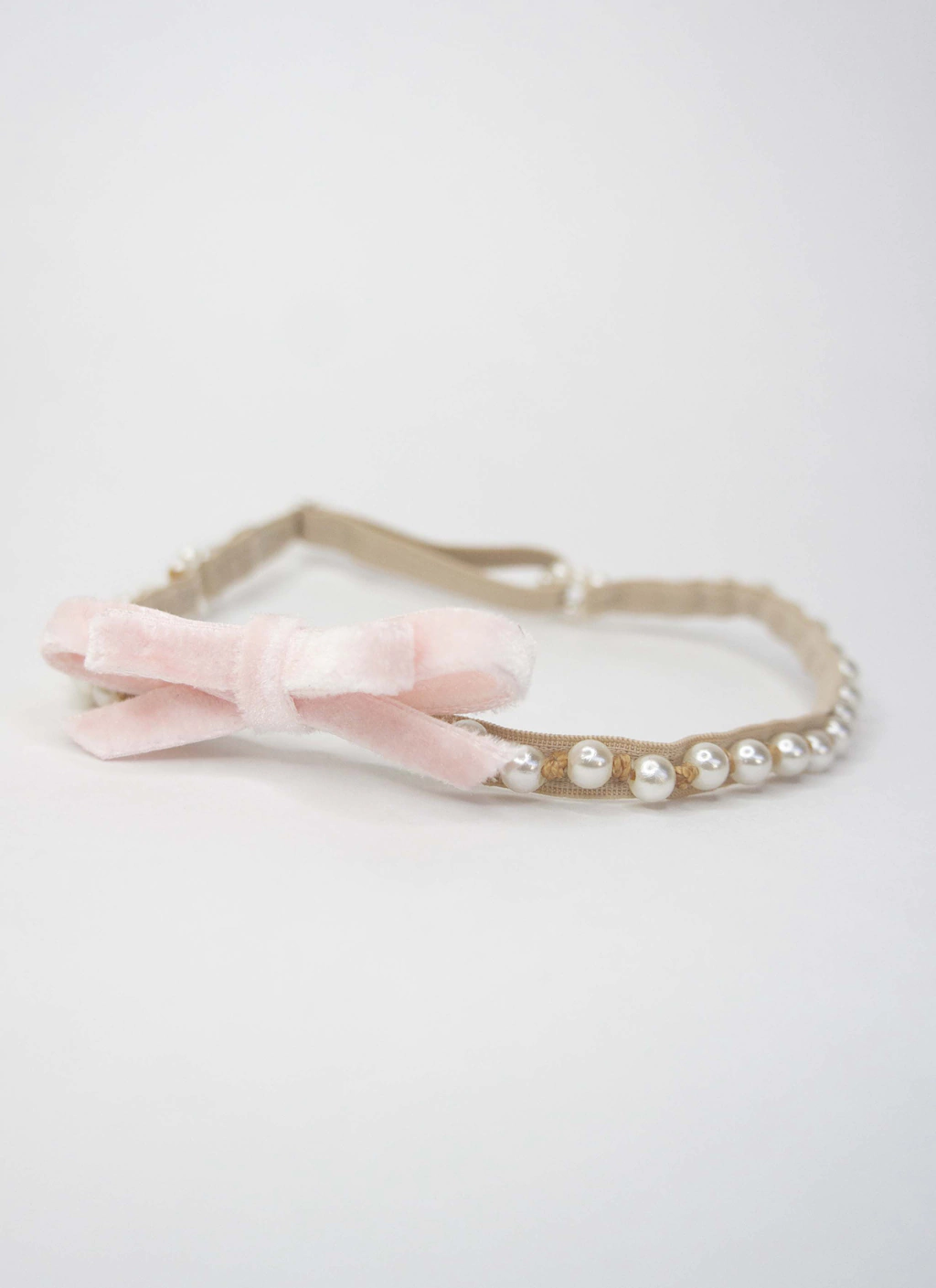 Transforme o visual da sua pequena com a Tiara Perolada com Lacinho - Lua! Esta tiara encantadora é confeccionada com uma base em elástico bordado, garantindo conforto e ajuste perfeito.